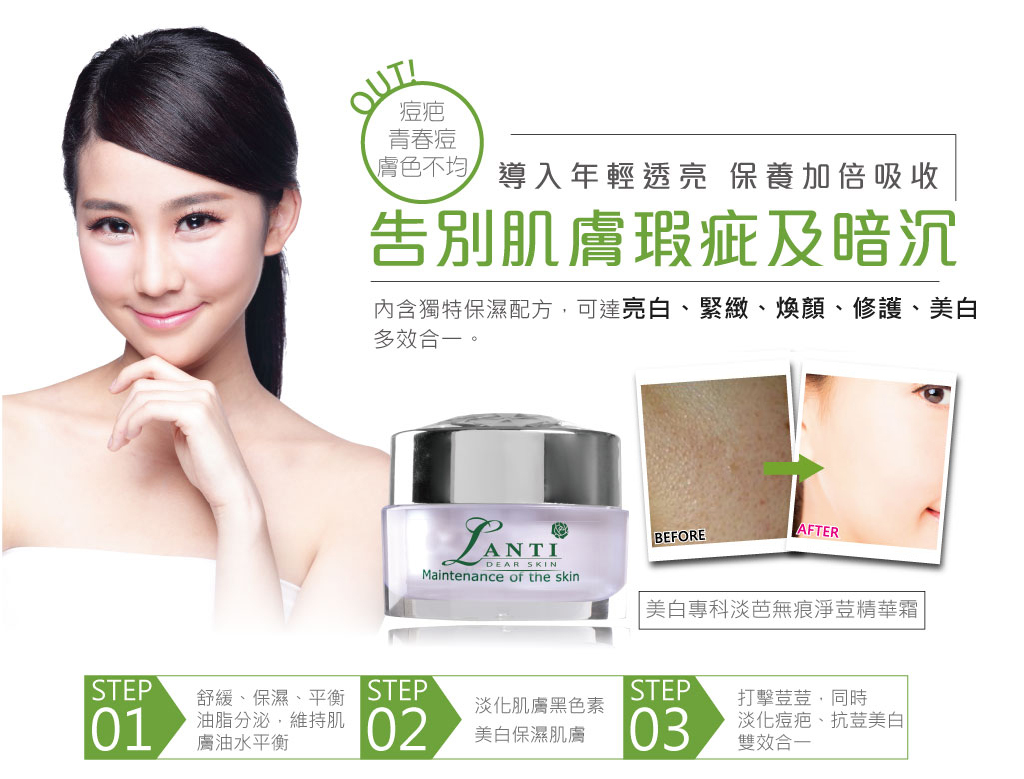 ◆商品名稱: Lanti美白專科淡芭無痕淨荳精華霜