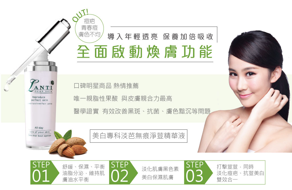 ◆商品名稱: Lanti美白專科淡芭無痕淨荳精華液