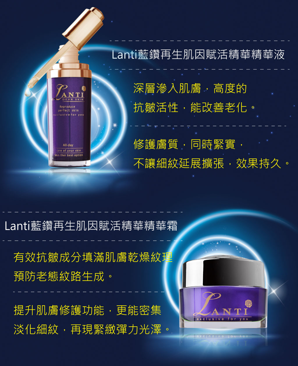◆商品名稱: Lanti藍鑽再生肌因賦活精華精華霜