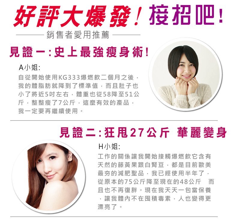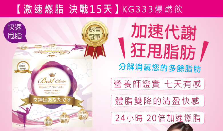 贈 品:KG333爆燃飲x3盒(15包/盒)