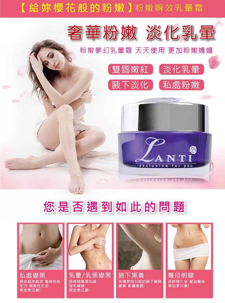 粉嫩瞬效乳暈霜:早晚塗抹少量於乳暈部位,輕輕按摩直到吸收為止,再穿上內衣。